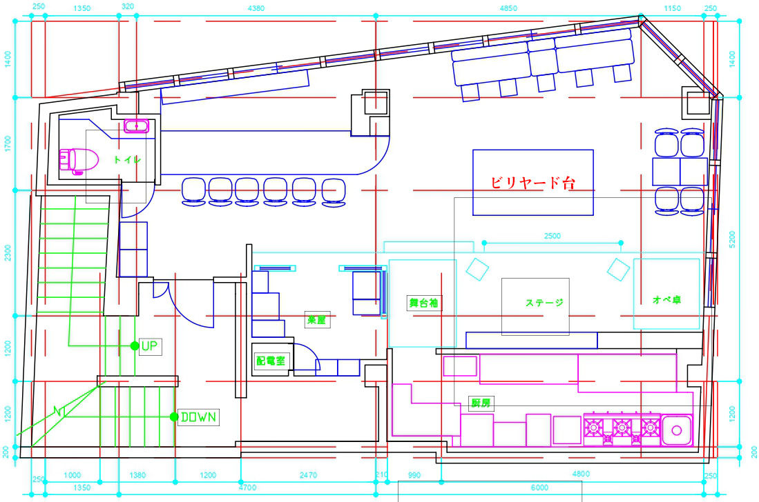| 店内設備 | プロジェクター(位置固定) マイクスタンド(屈折1、直1) 有線マイク(最大4発) オーディオミキサー12ch 収録用ミキサー 大型イーゼル2発 ビリヤード台 ※卓球台や大テーブル利用可 ※移動可能なため寄せてフロアを空けれます。 物販、展示棚 バーカウンター 撮影用スタンド(三脚1、一脚1) ヨガマット8枚 ピクチャーレール有 ※ステージサイドの窓側全周 ※ワイヤーハンガー貸し出し可能(20本)